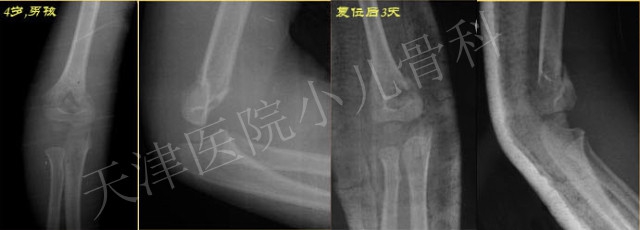 学生:4岁男孩,摔伤致“右肱骨髁上骨折”,急诊行骨折手法整复,您看复位后位置可以接受吗?