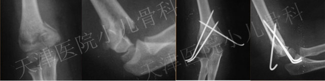 老师:早期闭合复位经皮穿针固定(CRPP)。手术复位时特别注意需要通过伸肘外翻的手法纠正尺侧塌陷,我习惯3枚克氏针内外侧交叉固定,这样多皮质的固定可以重建并维持内侧柱的长度,从而避免肘内翻的发生。