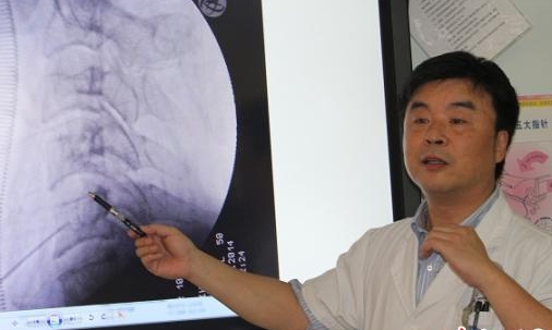 国产人工颈椎间盘研发者刘浩教授讲解置换手术。胡敏摄