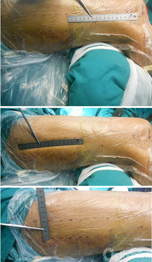 Fig. 1–3 Measuring the surface projection of iliotibial tract preoperation (approximately 3.5–4.0 cm wide and 25–30 cm long)