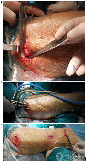 Fig. 12 Reconstruction of ACL and PCL by iliotibial band under arthroscopy