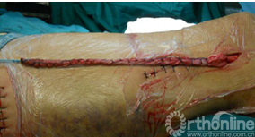 Fig. 4–6 A strip of iliotibial tract was dissected from the upper 1/3 thigh