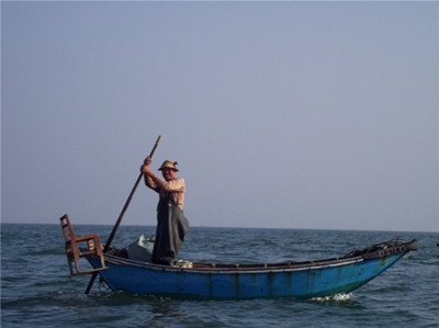 海水开始一直比较浅,但是走到离渔船10米的地方却渐渐过了了腰部。远处父亲大声喊道:“太深了,回来吧!”我看看其他还在前行的大人,估摸着深度,回头喊道:“我还可以试试!”终于慢慢地到了船边,海水已经到了胸部,开始感到紧张。