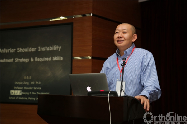 中华医学会运动医疗分会委员、北京积水潭医院姜春岩教授进行了“肩关节前向不稳的治疗-应对之策和必备技术”的汇报,并就“复杂肩关节不稳的治疗”与学员进行深入探讨。