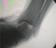 Komenda等对55例踝关节不稳患者在开放手术前进行关节镜探查发现:93%合并存在关节内病变,包括游离体、滑膜炎、骨软骨损伤、骨赘、粘连带,从而认为,在开放手术之前实施踝关节镜手术:例如微骨折、游离体取出、病变滑膜切除等,可以进一步提高手术疗效,提高患者满意度。Maffulli等采用Broström技术联合关节镜技术处理外踝韧带损伤引起的踝关节不稳,38例患者经过9年随访,证明该技术安全可靠。由于ATFL在踝关节镜下显示欠佳,且不能处理和稳定跟腓韧带,一般认为,关节镜手术价值是有限的。手术并发症:切口愈合不良或感染、神经刺激症状、瘢痕刺激、关节僵硬、慢性疼痛、踝关节骨关节炎。