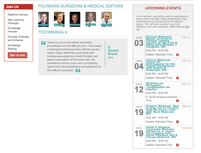 Foot Innovate是一家免费的国际足踝外科专业网站(网址:www.footinnovate.com),我们熟悉的著名足踝外科医生,如Dr.Mark Myerson,Dr.Robert Anderson,Dr.Michael J.Coughlin,Dr.Den Hartog,Dr.James K.Deorio等在线上定期有教程更新,免费注册成为会员后即可共享其丰富的资源。欢迎参与!