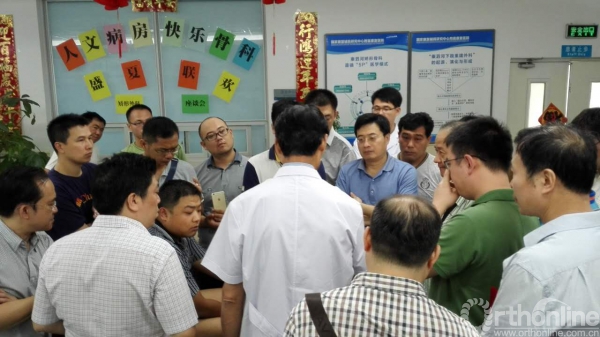 开班首日,第一个课程是矫形外科大查房,由秦泗河教授带领所有学员径直走到患者的床旁,针对70多个术前、术后不同类别四肢畸形矫形病例,在病床旁边给大家讲授下肢(足踝畸形)初步检查,病因、病理、术前设计及治疗策略等,首先给大家一个直观的感性认识。针对术后病人就Ilizarov外固定器结构特点与足踝畸形的关系进行了详细的解析,学员们听后都感叹环形外固定架在肢体矫形与功能重建外科展现的无穷魅力、奇特疗效。病区走廊有一道亮丽的医患文化交流墙,透露着秦泗河矫形骨科--“人文病房、快乐骨科”的深刻内涵。