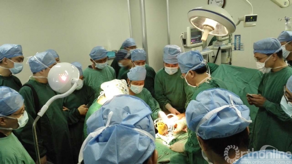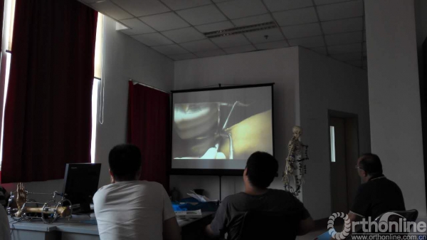 下午两点,学员们分成两组,直接被领进手术室。两个示教病例早已准备好,一个是踝内翻畸形,行微创截骨,Ilizarov外固定器矫形术,一个是马蹄内翻足畸形,行肌腱松解,肌腱移位,组合式外固定器固定。秦泗河教授亲自上台演示手术,边操作边解说,学员们亲眼领略到秦泗河教授的手术风格,大家聚精会神的观摩手术,不敢眨眼,生怕错过任何一个手术动作。