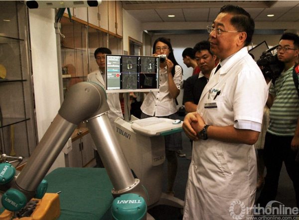 2015年8月6日,在中国、乃至世界脊柱外科的发展史上,都是值得关注的一天。北京积水潭医院脊柱外科田伟教授及其团队,运用我国自主研发的骨科手术机器人,成功完成了世界首例基于术中实时三维影像的机器人辅助脊柱胸腰段骨折的微创内固定手术,为一名椎体骨折患者经皮植入6枚椎弓根螺钉。