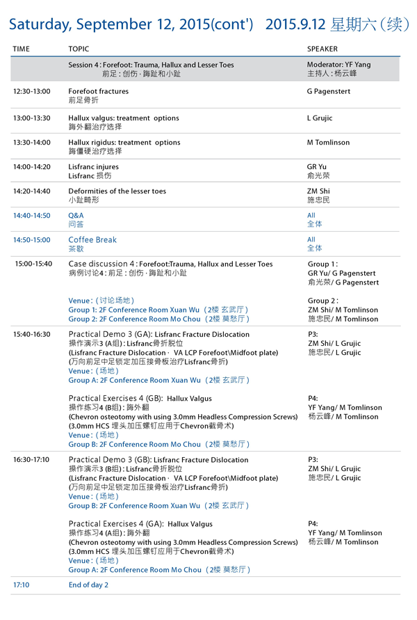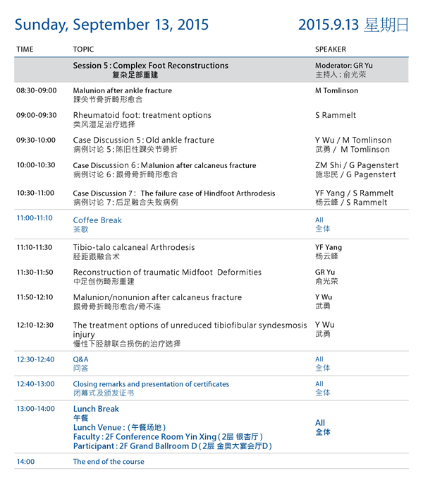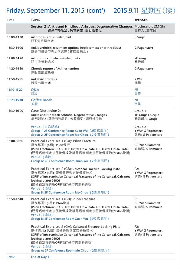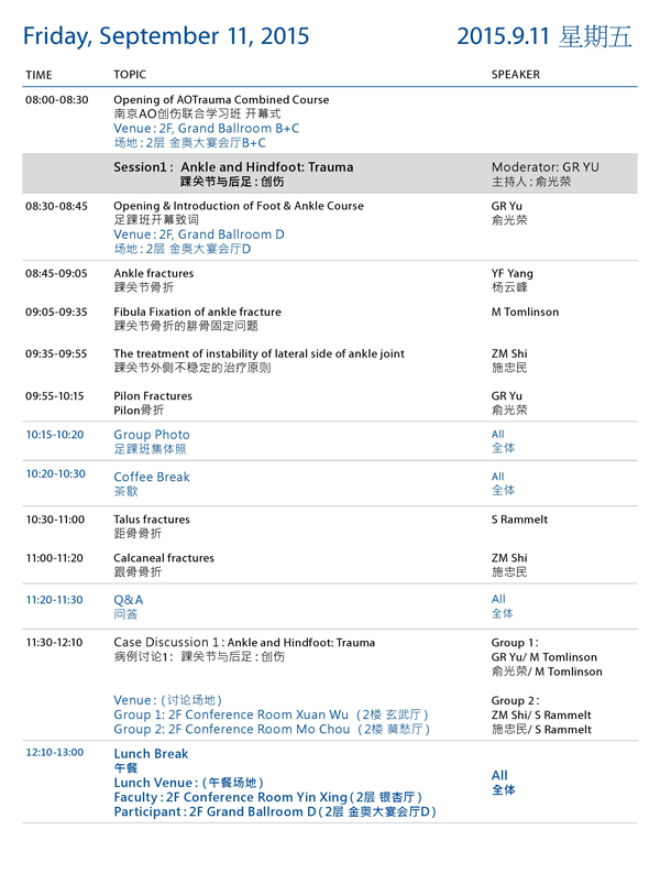 AO创伤足踝学习班教育日程