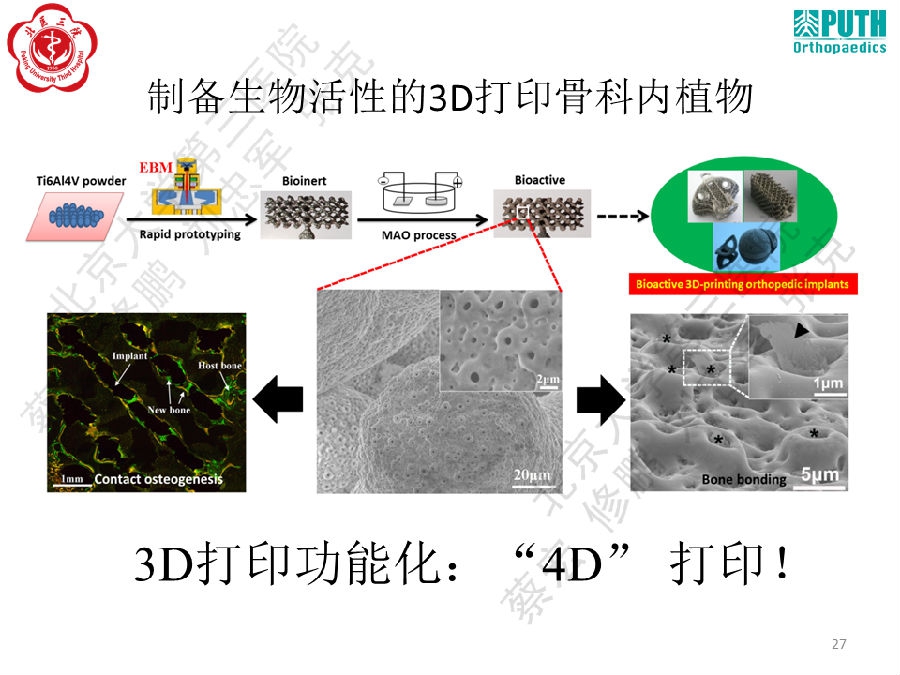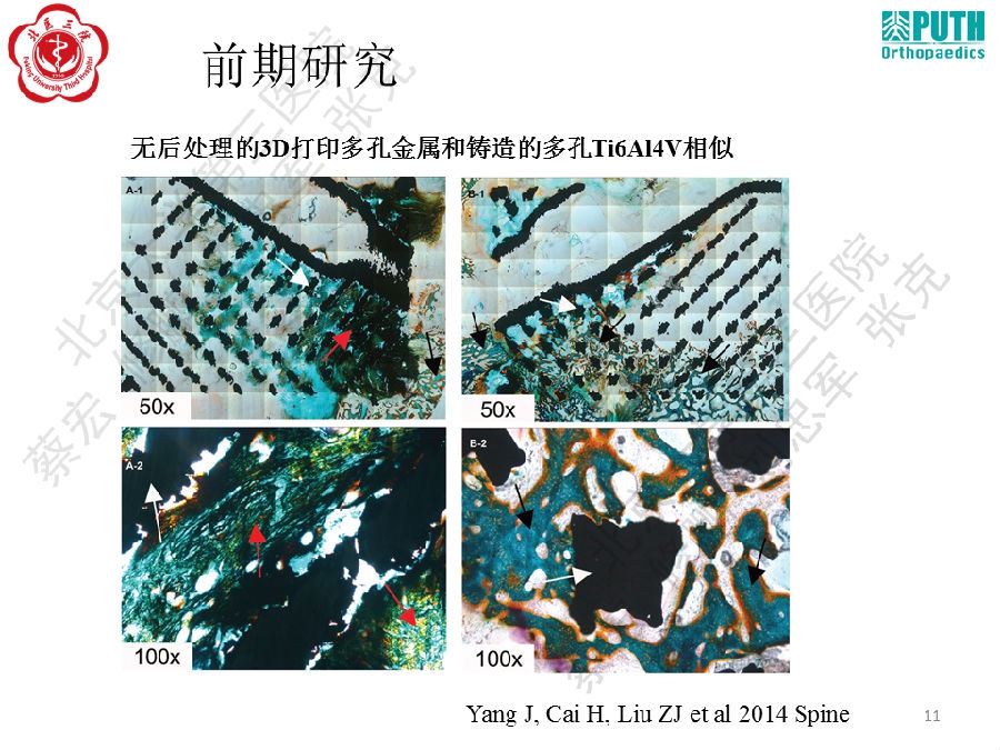 2015年12月12日,在北京召开的第二届3D打印骨科应用国际论坛(2015·北京)学术会议上,北京大学第三医院骨科副主任医师、北京大学医学博士、中华医学会骨科学分会关节外科学组膝关节外科工作委员会(Chinese Knee Society)秘书、中国老年学会老年脊柱与关节疾病委员会委员、中国医师协会骨科医师分会青年委员会委员蔡宏副教授所作的《金属3D打印的骨整合性能--未来会超越你想象》的报告,引起与会者的高度关注。经蔡宏医生授权,现将此课件与同道分享: