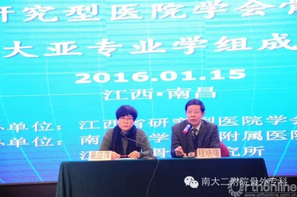 会上,中国研究型医院学会副会长、江西省研究型医院学会会长、南昌大学第二附属医院院长程晓曙和江西省研究型医院学会秘书长易应萍共同出席开幕式并致辞。程晓曙会长会上发表了《江西省研究型医院学会的由来、管理及职责》的重要讲话,表达了学会将以探索和建设研究型医院为目标,促进学术交流,坚持以“转化医学”为核心,积极探索医院发展新模式,促进医学科学知识的产生、流动和转化,加速基础生物医学研究成果在临床实践中应用的宗旨,而江西省研究型医院学会骨科学分会的成立代表了江西省骨科事业的进步,他寄语在场同道不断努力,让分会得到更好的发展。