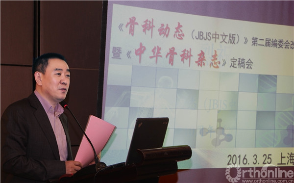 2016年3月25日,编委改选会在编辑部所在单位上海交通大学附属第一人民医院召开,由现任编辑部主任蔡郑东教授主持,蔡教授回顾了《JBJS》(中文版)十年来的发展历程,就个人承办该杂志以来的工作进行了述职汇报,同时对日后杂志出版提出了一些改进的具体方案。上海交通大学附属第一人民医院孙晓东副院长代表院方祝贺新一届编委会的产生,并表态院方将全力支持编辑部,办好本杂志,为全国骨科医生谋福利。《中华骨科杂志》编辑部胡永成主任宣布了新一届编委名单,由《JBJS》(中文版)现任主编马信龙教授为新一届编委办发编委聘书,对新的一届编委会提出了殷切期望。新一届编委们随后就本杂志的未来发展提出了许多建设行性建议,相信《JBJS》(中文版)一定会在新一届编委会的主导下越办越好。