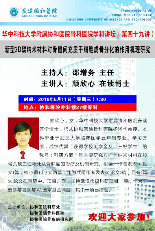 下期预告:华中科技大学附属协和医院骨科医院学科讲坛(第四十九讲)