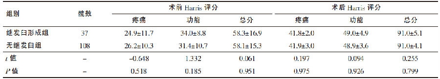 表3 全髋关节置换112 例145 髋术前与末次随访Harris评分比较(