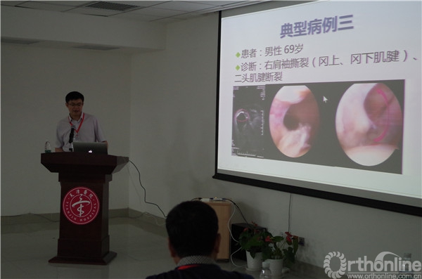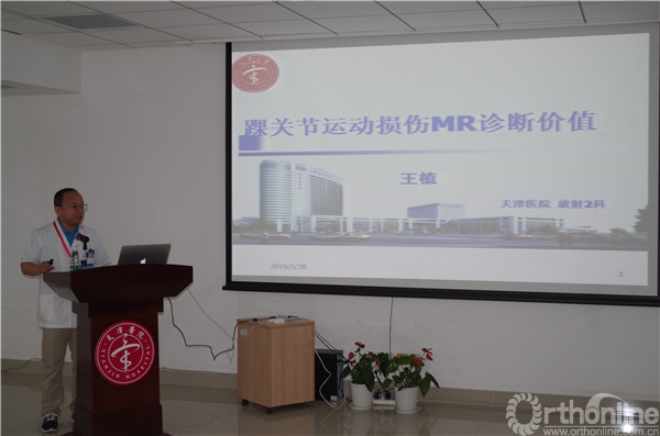第三阶段主要是足踝运动损伤的诊断与治疗的讨论。天津医院放射二科王植主任做《放射影像在踝关节损伤的评估》的报告中讲述了踝关节运动损伤复杂,精确诊断必要性;北医三院运动医学研究所郭秦炜教授做《踝关节不稳的诊断及韧带重建》的报告;吴疆大夫做《距骨坏死的关节镜下治疗》的报告,阐述距骨坏死关节镜下的治疗方法。