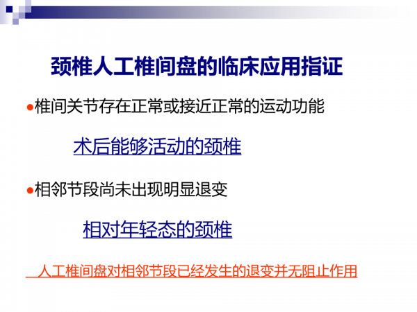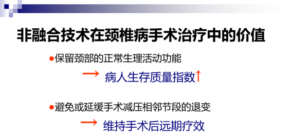 目前,减压和融合手术(ACDF)治疗颈椎病尽管技术成熟,疗效肯定,但是融合技术所存在的颈部活动度受限和远期颈椎相邻节段退变危险等问题,让人们思考非融合技术在颈椎病手术治疗中的价值,以提高病人生存质量和维持手术后的远期疗效。