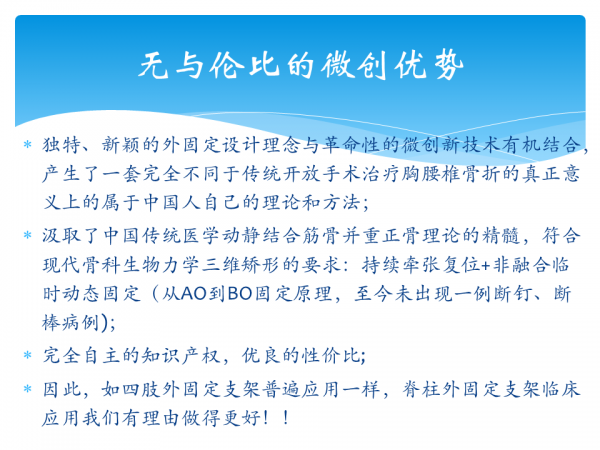 从AO固定到BO固定,是胸腰椎骨折治疗理念上的一次革命性改变,它真正实现了以最少的创伤换取病人最大利益的目的。
