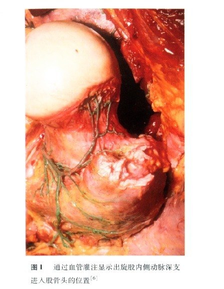 既往股骨头主要血供被认为是来自旋股内侧动脉和旋股外侧动脉发出的,环绕在股骨头颈交界处的基底动脉环,并以此发出数条侧骨骺动脉以及圆韧带动脉,后续证实圆韧带动脉对股骨头血运供应微弱,没有临床意义。