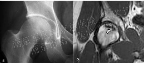 1.症状及体征:早期可无症状,随病情发展可出现腹股沟部疼痛,有时可放射到同侧的膝部及臀部;体格检查可见髋关节的活动受限,尤其是内旋时可诱发髋部疼痛。