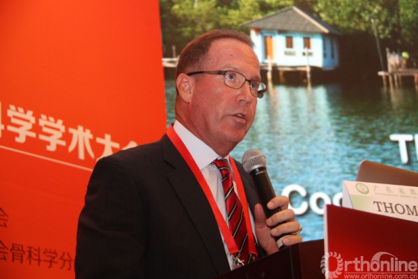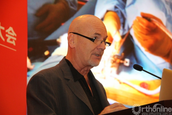 美国库恩关节置换研究所主任Thomas M.Coon教授的讲题是《单半径理论在膝关节手术中的应用》,Thomas教授首先提出了为什么全膝关节置换术(TKA)会失败的问题,并由此引出了一种全新的单半径理论,他向与会代表介绍了通过这种理论制作的人工关节在进行关节置换时的优势。