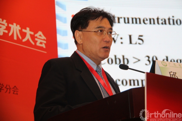 邱勇教授的讲题为《退变性腰椎侧凸矫正长固定:何时可不固定骶骨?》。邱教授首先对国际上有关退变性腰椎侧凸矫正长固定的研究进行了一个简单的介绍,之后通过大量经典病例向与会代表分享了鼓楼医院进行此手术时的经验。