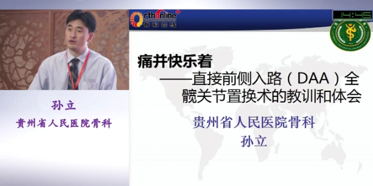 近年来,微创全髋关节置换术开展越来越广泛,研究者提出了许多微创手术入路,其中包括直接前入路(DAA),本次小编向您介绍的是贵州省人民医院孙立教授以“痛并快乐着直接前侧入路(DAA)全髋关节置换术的教训和体会"为题讲述了他的DAA手术体会,精彩视频如下: