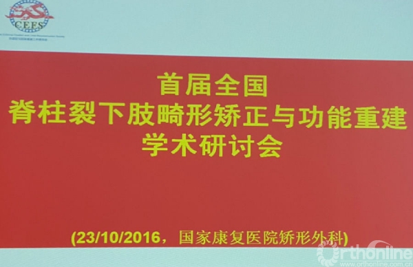 2016年10月23日,首届全国脊柱裂下肢畸形矫正与重建研讨会在国家康复辅具研究中心附属康复医院成功举行。本届研讨会由中国康复辅具协会肢体功能重建与外固定委员会主办,中国肢残人协会脊柱裂与脑积水委员会、北京肢残人协会以及中国骨科医师协会外固定与肢体重建委员会(CEFS)协办,国家康复辅具研究中心附属医院矫形外科承办。
