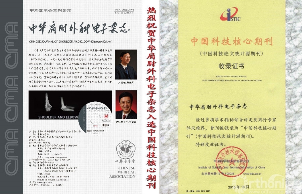 2016年10月,《中华肩肘外科电子杂志》被收录为“中国科技核心期刊”(中国科技论文统计源期刊),这标志着该杂志进入中文核心期刊行列,其办刊质量及业界影响力上又迈上一个新的台阶。