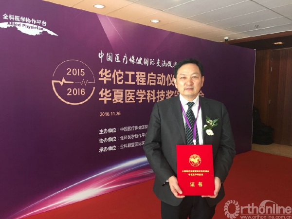 (3)北京积水潭医院 蒋协远、李庭、公茂琪、查晔军、刘兴华、张力丹、陈辰、郭祁的《复杂肘关节损伤的系统临床研究—规范化诊疗策略的建立及应用》项目荣获2016年度华夏医学科技奖三等奖。