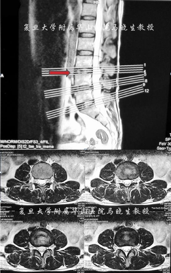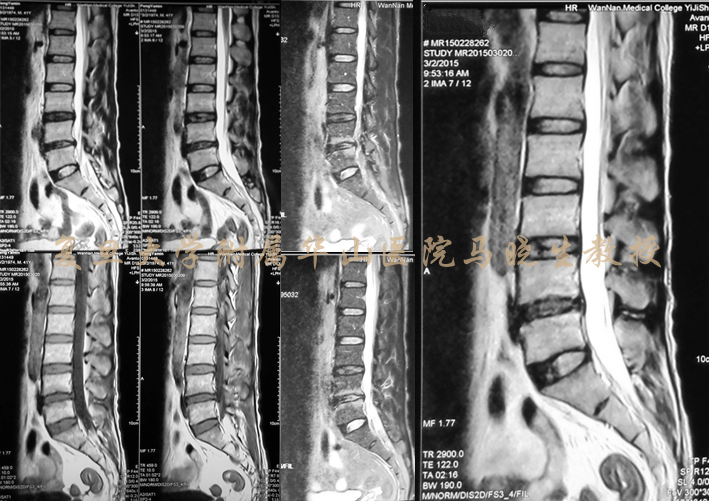 查体:腰椎生理弧度存在,腰背部压痛,腰椎屈伸活动受限,双侧直腿抬高试验(-),双下肢感觉、运动正常,双膝反射(++),双踝反射(++),病理反射未引出。