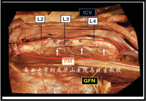 ◆ 起点位于L2/3椎间盘水平,腰大肌内缘;