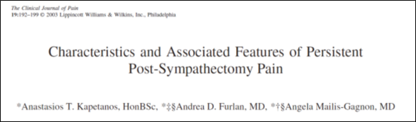 ◆ 交感链损伤表现12个月后缓解,残留左下肢近端胀痛;