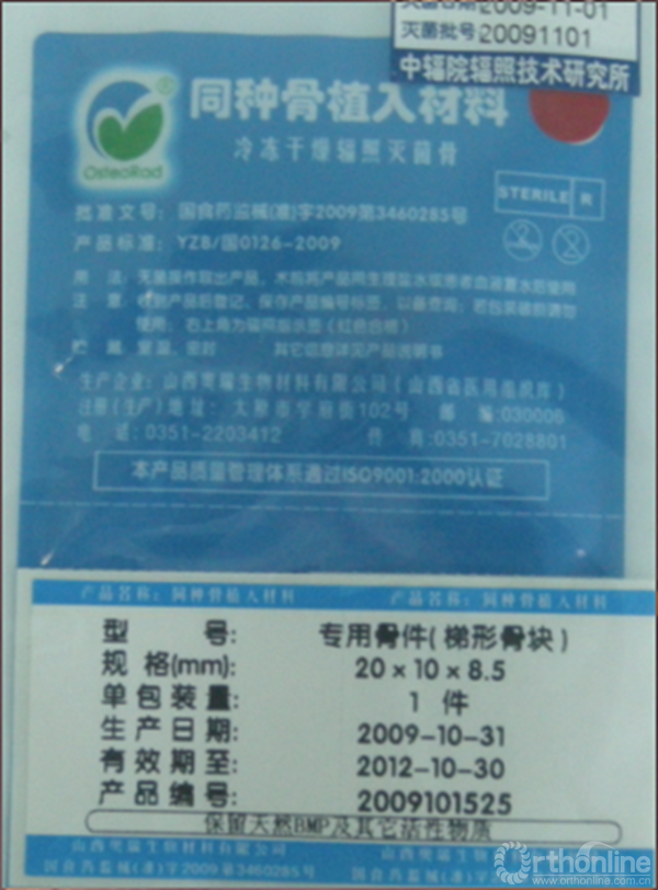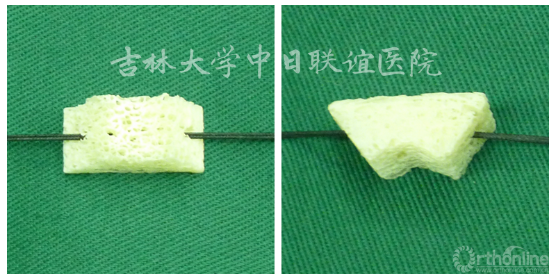 图2 吉林大学中日联谊医院术中采用的专利骨块其型号、角度及大小是朱庆三教授的专利