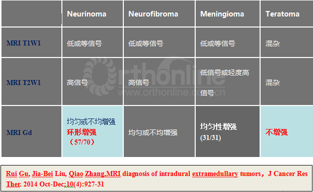3. Rui Gu, Jia-Bei Liu, Qiao Zhang, MRI diagnosis of intradural extramedullary tumors,J Cancer Res Ther. 2014 Oct;10(4):927-31