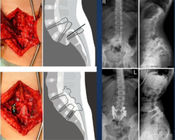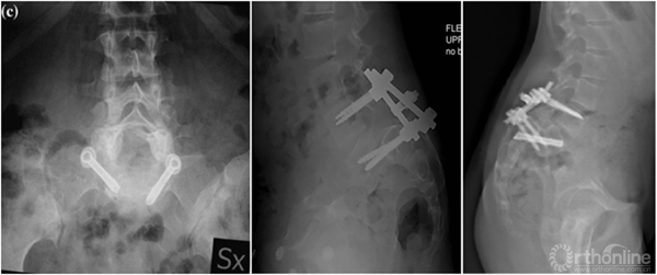① 对于失平衡不重者,可以采取一期后路部分复位和经骶骨轴向融合方式[4]。