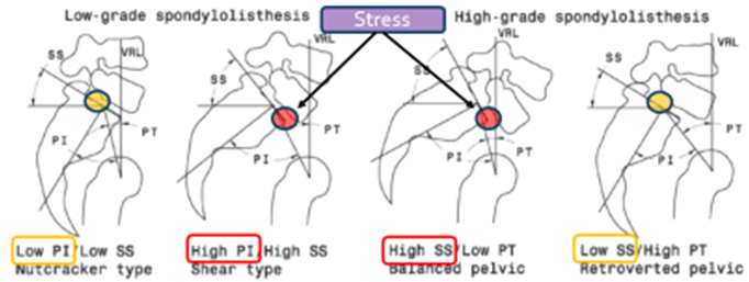 腰椎重度滑脱症定义是指椎体滑移率>50%,Meyerding>II度。青少年人群中发病率为2.4%,常累及L5/S1节段。发育,创伤,手术和病理是造成腰椎重度滑脱症的因素。依据SDSG分类,重度滑脱分为骨盆平衡,骨盆后倾和失平衡三种类型。从自然史讲,生长发育期间的腰椎重度滑脱症会出现进展,造成临床症状和脊柱矢状面失平衡,因而需要外科干预。