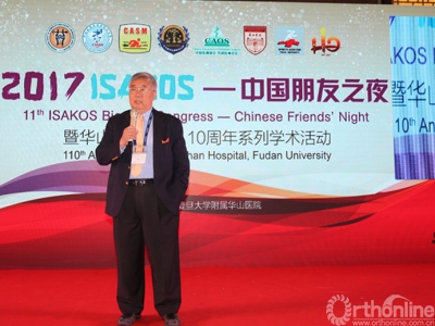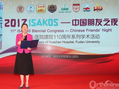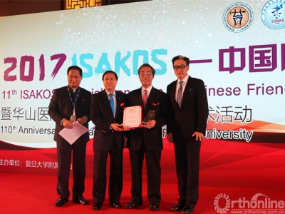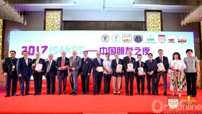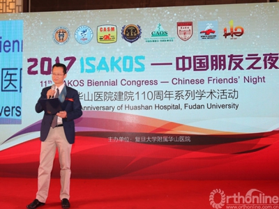 6月4日,国际骨科运动医学与关节镜微创外科领域最大、最权威的学术组织-ISAKOS (国际膝关节-关节镜-骨科运动医学学会)双年会在上海隆重开幕。这不仅是复旦大学历史上举办的最大国际会议,也是中华医学会系统承办的骨科运动医学层次最高、外宾参与人数最多的国际医学大会。2017年又逢复旦大学附属华山医院建院110周年、华山医院运动医学科成立60周年纪念。作为东道主单位,华山医院于6月4日晚举办了“中国朋友之夜--颁奖暨答谢晚会",以感谢国际友人和专家多年来对中国与复旦大学运动医学事业发展的支持与帮助,并在会上表彰了部分国际友人。参会的有百余名国际学会代表,包括ISAKOS执委会、亚太、北美、欧洲和拉美等洲际骨科运动医学和关节镜学会主席,世界各国学会主席和国际友人。