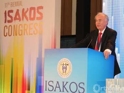 6月5日,大会进入第三天。ISAKOS现任主席、法国里昂大学骨科教授Philippe Neyret在上午的主席特别演讲中,首先赞扬了中国医生的善良、热情、谦虚和开放。当讲到运动医学医生培养时, 通过引用大量名人名言,讲述自己做医生并担任国际重要职位的经历,以及以中国乒乓球队在世锦赛夺冠为例,号召广大骨科医生,不断努力,拓宽思路,勤于实践,从前人的经验和错误中积累教训,提升自己。整个演讲过程中,他多次表达了对中国运动医学发展的肯定和给予的高度评价。演讲结束后,全场国内外嘉宾起立鼓掌致敬。