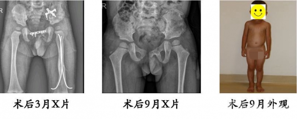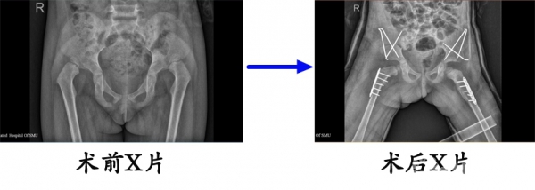 李某某,右侧发育性髋关节发育不良,在我院行改良三联截骨后,复位良好。