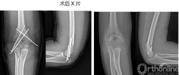 华某某,12岁,男,完全移位的右肱骨髁上骨折,行肱骨髁上骨折“零”切开手术,术后恢复良好,不留疤,在门诊取内固定可立即离院。