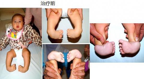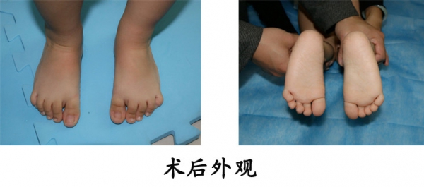 4.先天性马蹄内翻足,出生一周时至我院就诊,予标准的Ponseti系列手法+石膏治疗,行经皮跟腱微创松解。治疗后足外观恢复正常。