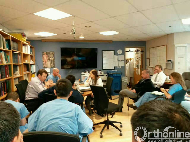 周四大讨论,6:15开始,依次进行新病例讨论、术后病例回顾和文献学习,每个专业学习一篇(脊柱、关节、创伤、小儿、运动医学),最后有各专业的Chief做总结。老美对专业的钻研很认真很拼,这一点值得我们去学习。