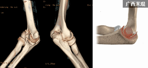 2.曾行手术已改变了肘关节的正常解剖结构。