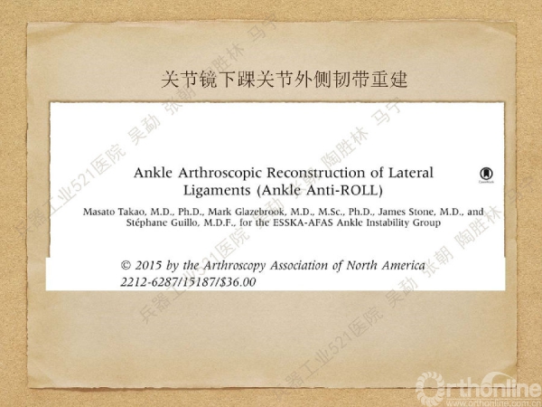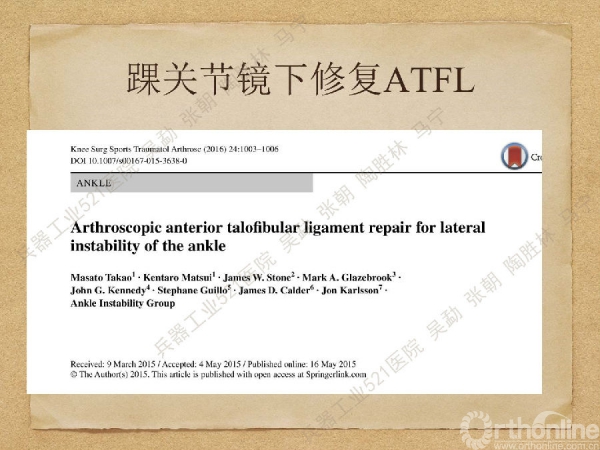 文献学习丨踝关节镜下外侧韧带修复重建及相关解剖学研究