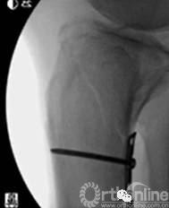 从前方植入一枚较粗的克氏针在关节软骨下骨处,进行挑拨复位