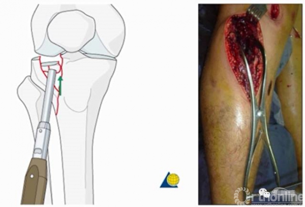 AO有一套牵引器械,十分适合胫骨平台