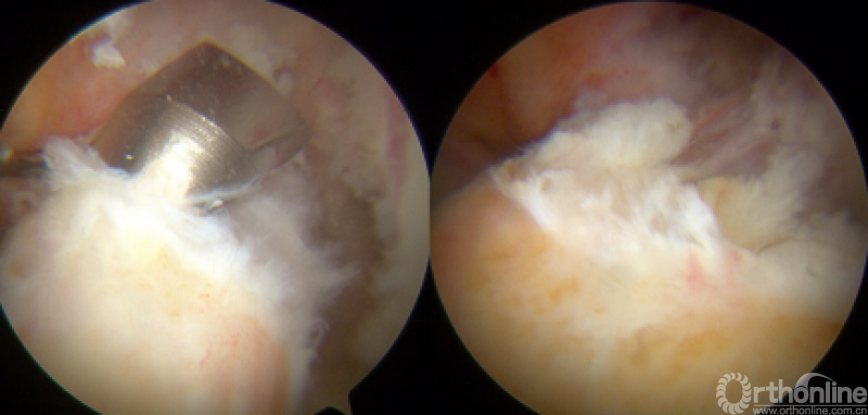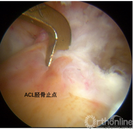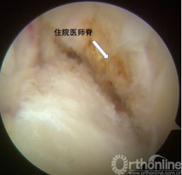 图1:在尽量不损伤ACL股骨残端和周围组织情况下确定住院医师脊位置