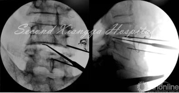 7.术中透视示减压的深度和宽度,以判断减压的范围;