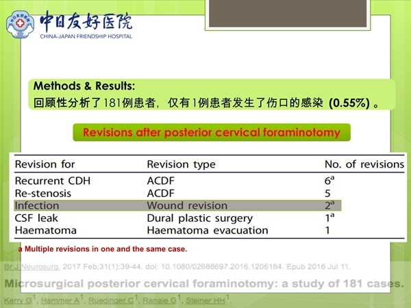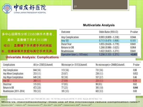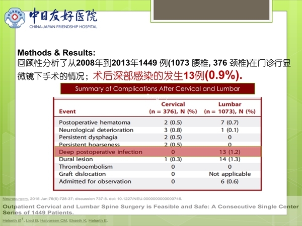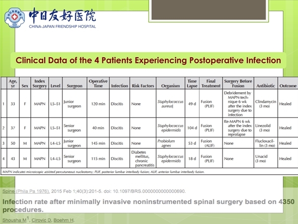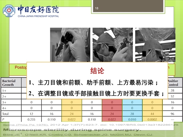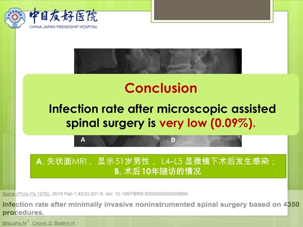 (1)显微镜下脊柱手术不会增加患者术后的感染机会。